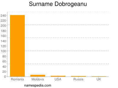 Ţările în care numele Dobrogeanu este prezent, sunt: Romania(241), Moldova(7), USA(3), UK(1)
