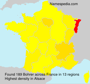 Hartmut Bohrer says: Bohrer ist eine Berufsbezeichnung aus der Edelsteinbearbeitung - deshalb größte relative Verbreitung in Idar(-Oberstein), Bundesland Rheinland/Pfalz (Deutschland). Aufgrund von technischem Fortschritt und preisgünstigerem Abbau von Edelsteinen in "Übersee" bedeutende Auswanderung in die USA, nach Brasilien, ins Elsaß (Frankreich) und andere Regionen, in denen Achate, Amethyste und andere Edelsteine abgebaut wurden.