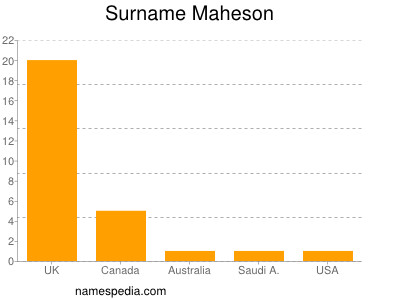 Surname Maheson is used at least 28 times in at least 5 countries.