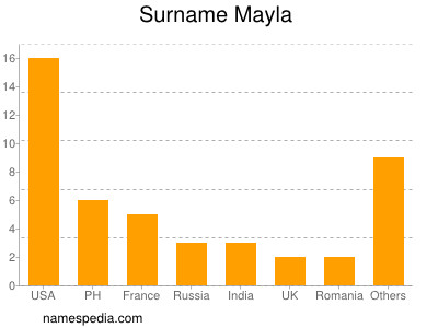 Surname Mayla is used at least 46 times in at least 15 countries.