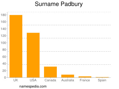 Surname Padbury is used at least 350 times in at least 6 countries.